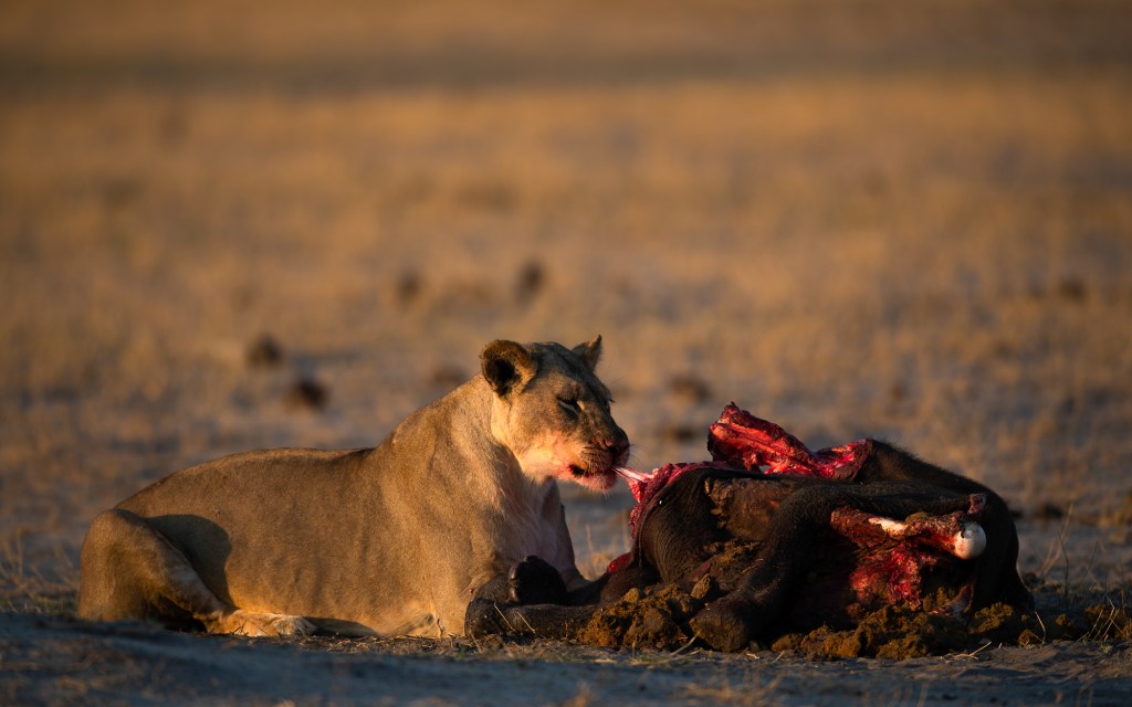 Dickson tells us that the lions have been killing several times a night. While it is distressing to witness such a one-sided battle, I know that, in a few weeks’ time, when the rains come, the lions will have it much tougher. Much of the game will disperse into the waterless wilderness and there will be many a day when the cubs go hungry.