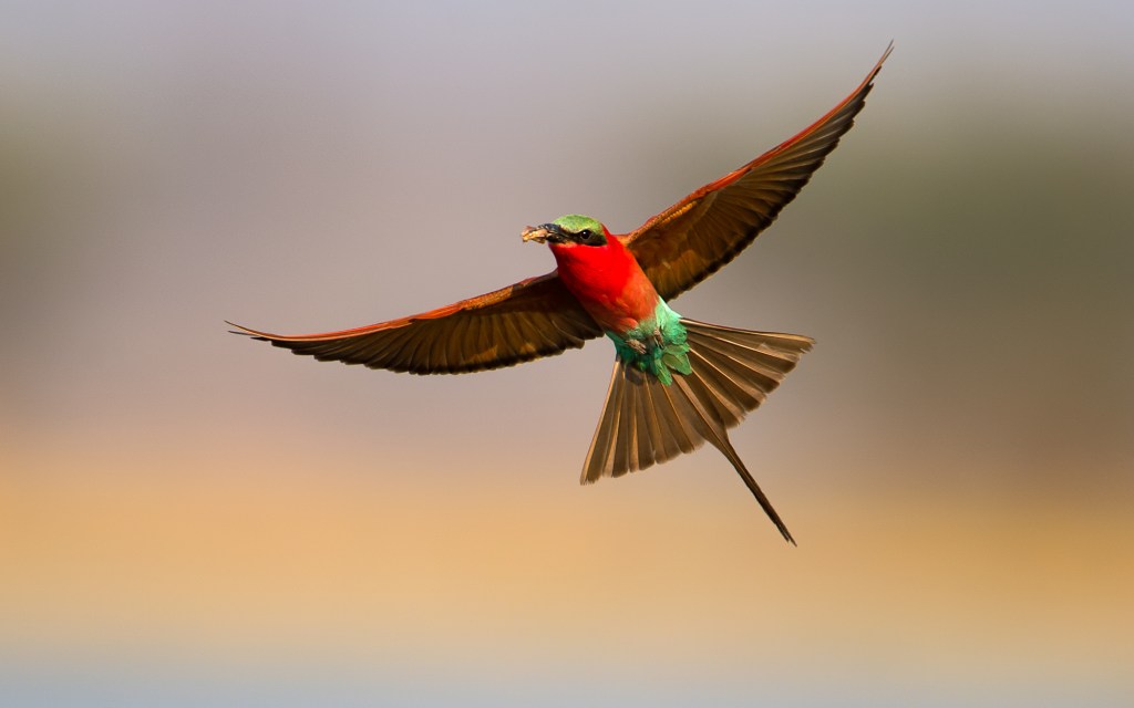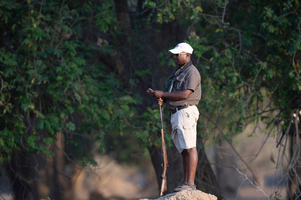 We take an evening stroll along the banks of the Zambezi to a bee-eater colony to practice photographing birds in flight. It is notoriously difficult but very rewarding if you succeed. It requires incredible patience and concentration and Henry stands sentry on a termite mound to ensure nothing creeps up behind.