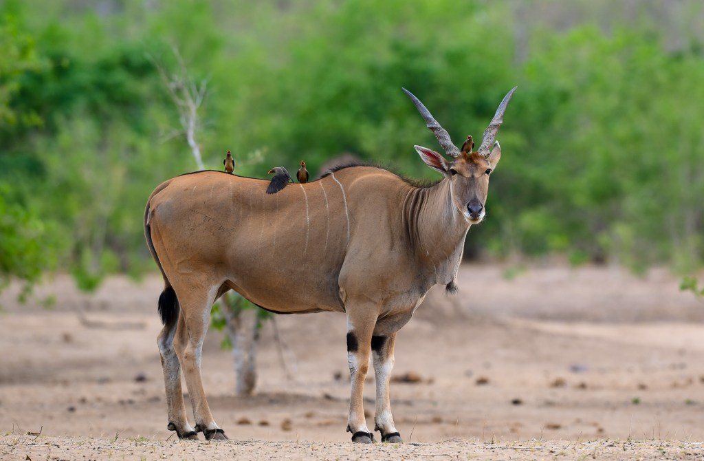 Although in our search we did not find the painted wolves, we did come across a pride of dozy lion and a herd of eland, including a large male fashioning some red-billed oxpeckers and a Donald Trump style wig.